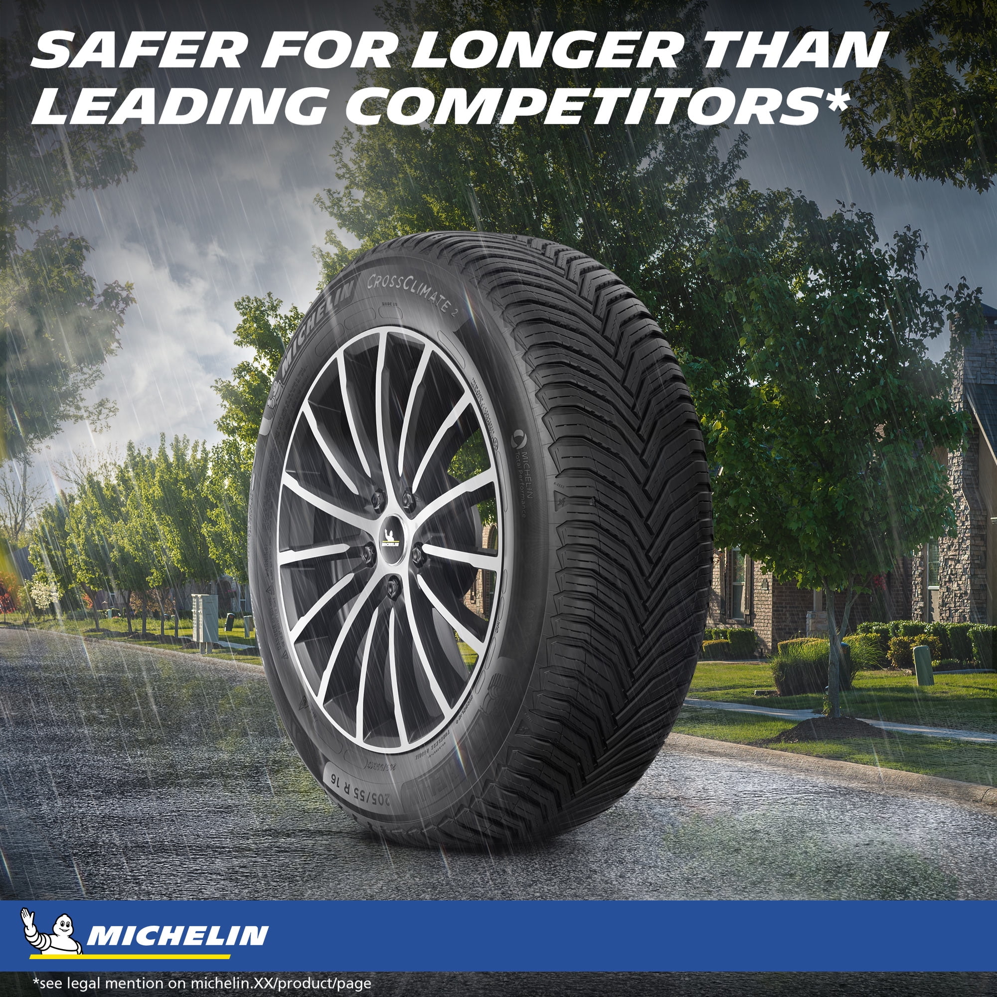 Michelin CrossClimate 2 lasts 11–23% longer than the other leading all-season tires from the largest competitors (Continental CrossContact LX25 & PureContact LS; Goodyear Assurance WeatherReady; and Bridgestone Turanza QuietTrack). Michelin’s innovative combination of rubber compound and directional tread design on Cross Climate 2 solves dealers’ concerns about treadwear (mileage or longevity), noise and servicing.