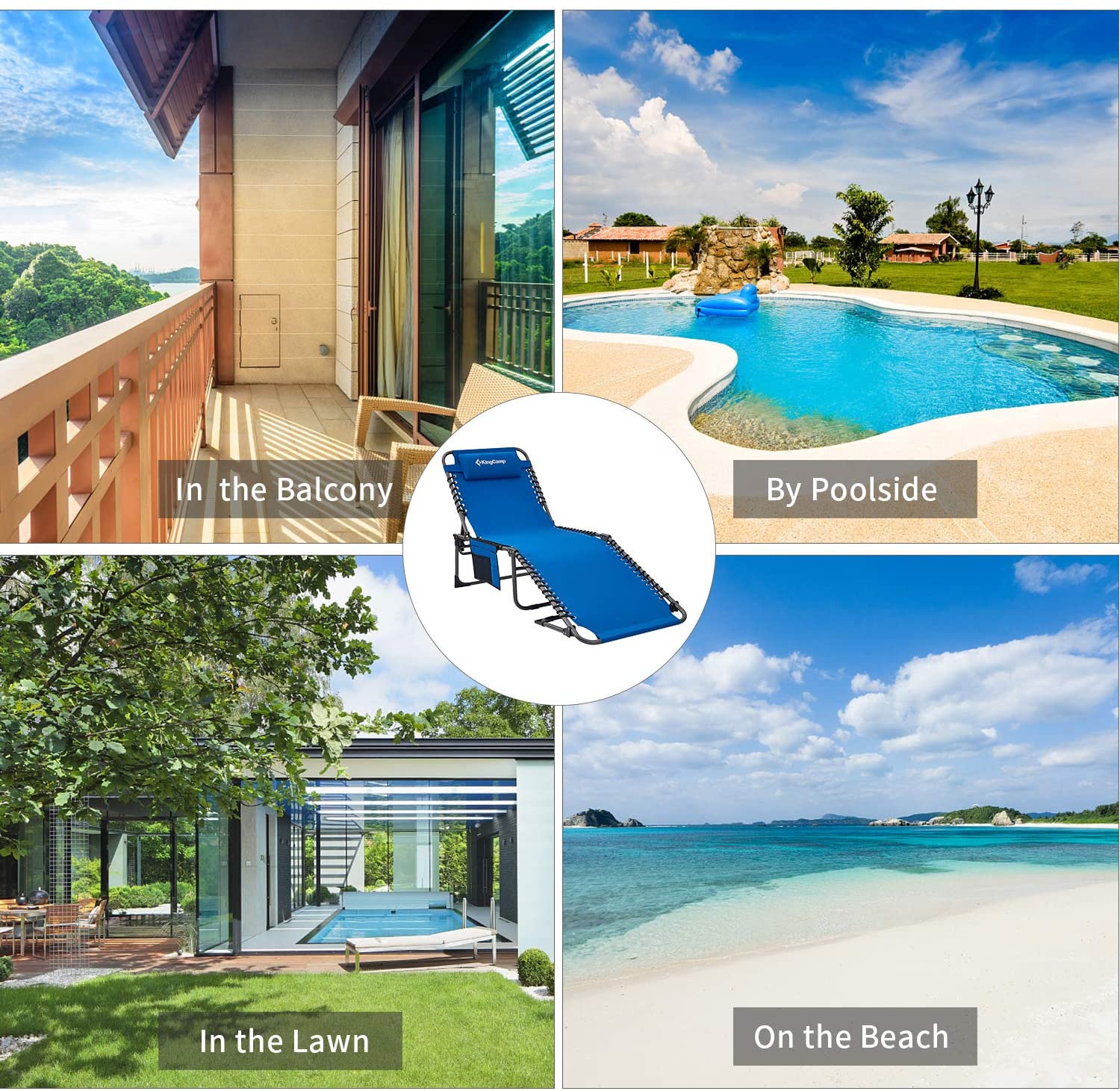 - 【Multipurpose Folding Lounge Chair】The lounger is ideal for outdoor and indoor using. Applied at beach, patio, pool, lawn, garden, deck, office Nap, bedroom, balcony, or as a temporary bed for your guest. Relax yourself in backyard, enjoying the sunbathing or listening to the waves at beach.