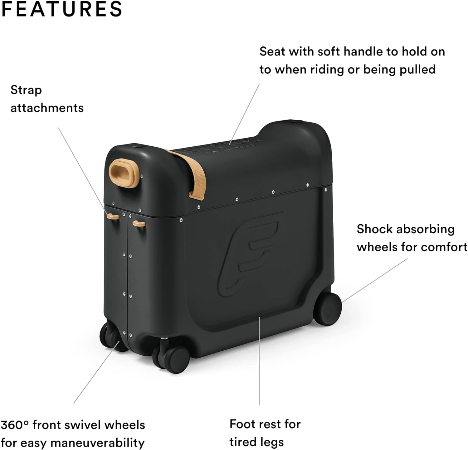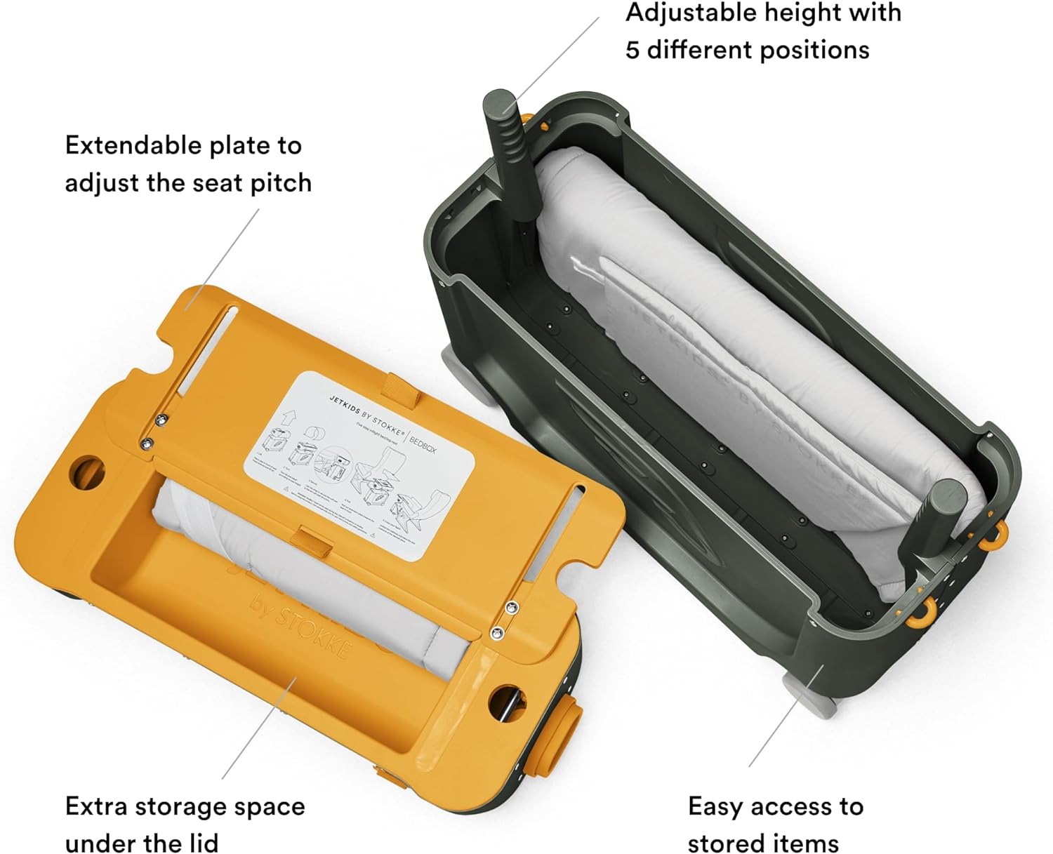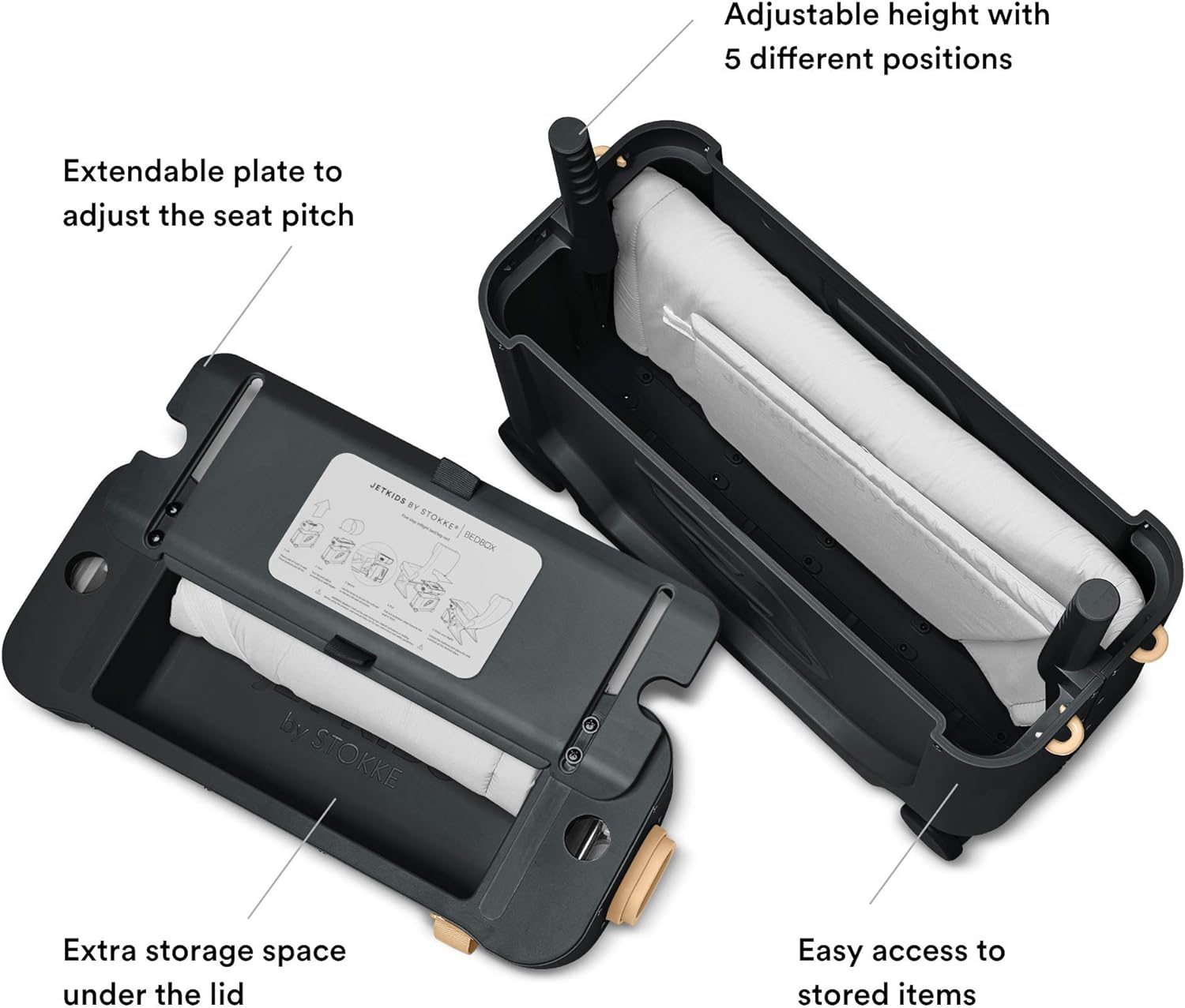 - FIRST CLASS EXPERIENCE - JetKids by Stokke BedBox is the world's only premium, ride-on suitcase for kids with an in-flight bed or leg-rest feature. Once the seat belt sign is off, transform the suitcase into a bed in 5 simple steps.